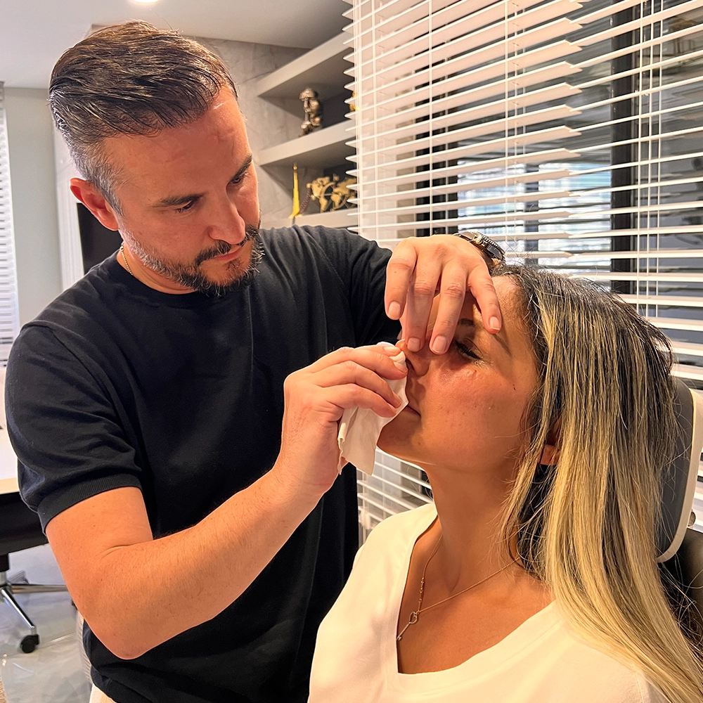 At his clinic in Antalya, Dr. Balıkçı performs septorhinoplasty surgery in Turkey under general anesthesia. The procedure typically lasts two to three hours and involves these steps: